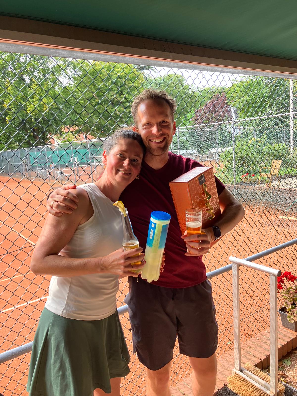 Op 6 september werd er fanatiek getennist! Zes koppels streden in de brandende zon om de titel Clubkampioen Gemengd dubbel 2025. Na bloedstollende kwalificatiewedstrijden van 60 minuten, gevolgd door halve finales om een gewonnen set, verloren Wilma en Nick Bollebakker de grande finale om twee gewonnen sets van Esther Lups en Marco van der Kruijf.